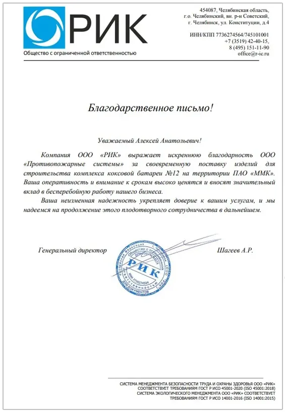 Благодарственные письма