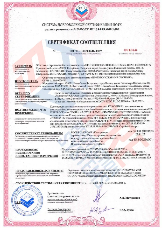 Противопожарные светопрозрачные перегородки отличаются следующими свойствами: